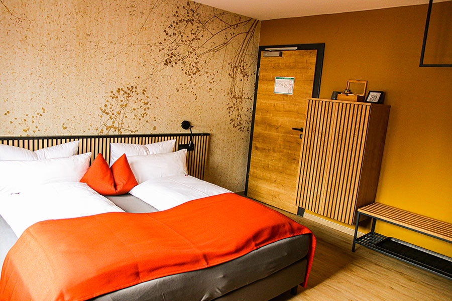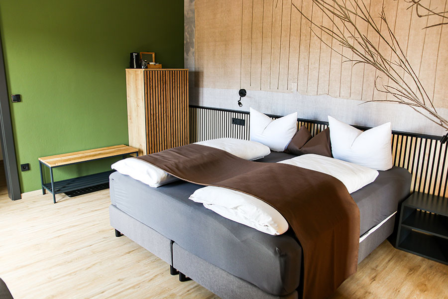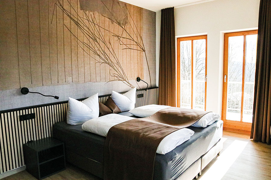 Bei den Renovierungsarbeiten in 2022 setzte man auf ausgewählte Naturmaterialien in Kombination mit wiederverwendetem Holz für das Mobiliar und moderne Elemente. In den verschiedenen Kategorien der neu gestalteten und renovierten Zimmern ist garantiert für jeden das Passende dabei.