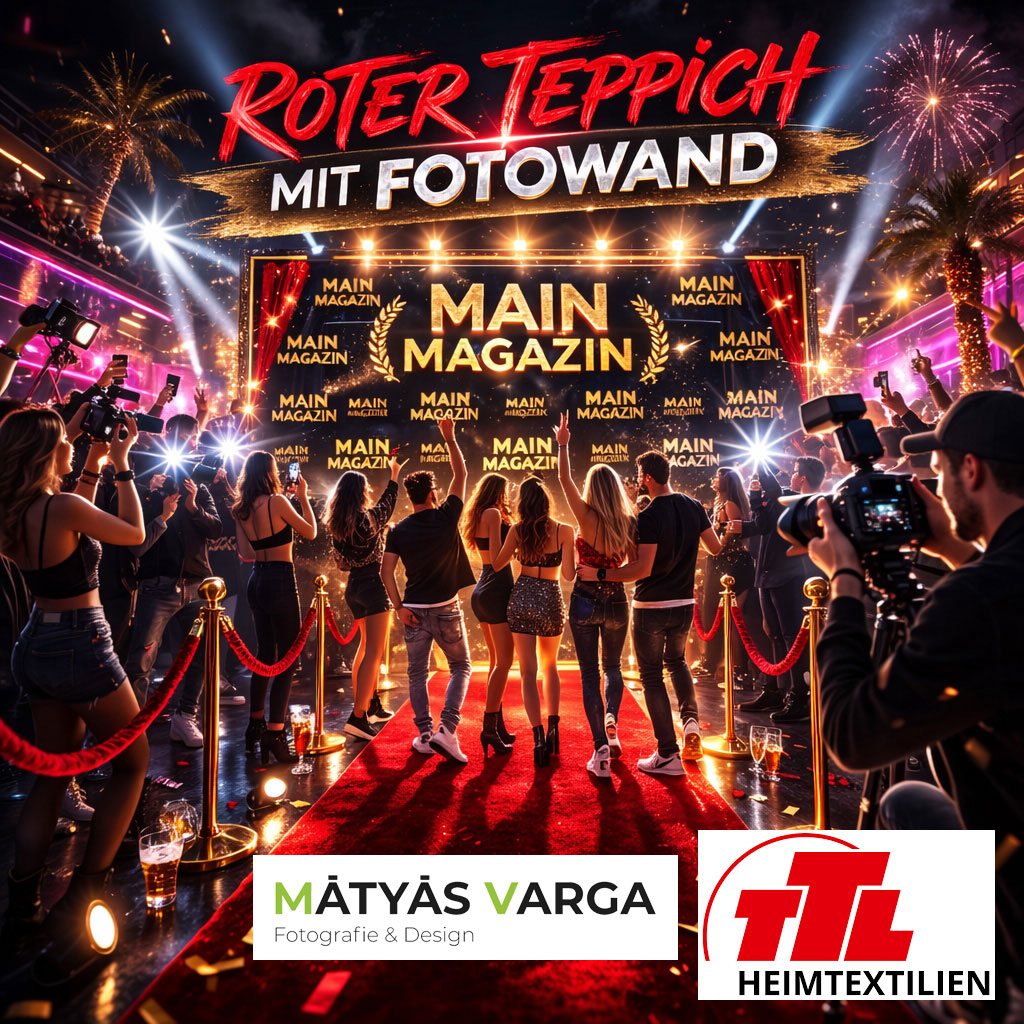 Bevor die ersten Beats durch den Zauberberg rollen, beginnt der Abend mit einem echten Statement. Der rote Teppich ist ausgerollt – und er gehört euch. Ankommen, posieren, feiern. So startet man in eine Jubiläumsnacht. Der Teppich selbst kommt von TTL Bodenbeläge Würzburg – ein starkes Stück Handwerk aus der Region, das an diesem Abend für echtes Wall-of-Fame-Feeling sorgt. Vor der Fotowand entstehen große Momente: Blitzlichtgewitter, starke Bilder und dieser Hauch von Hollywood, nur eben auf Retrotation-Art. Hier treffen 80er-Vibes, 90er-Attitude und 2000er-Clubenergie auf stilvollen Auftritt. 25 Jahre Main Magazin bedeuten auch: gemeinsam sichtbar sein. Der rote Teppich ist Auftakt, Begegnung und Teil einer Nacht, die in Erinnerung bleibt