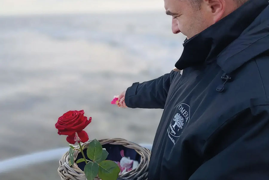 Viele Angehörige beschreiben den Moment auf See als besonders friedlich. Wenn sich das Schiff vom Hafen löst und das Wasser ruhig gegen den Bug schlägt, entsteht eine Atmosphäre der Sammlung und Stille. Der Abschied geschieht im Einklang mit der Natur – getragen von Wind, Wellen und Weite. Die Zeremonie kann begleitet oder still erfolgen. Manche Familien sind an Bord, andere bevorzugen eine Übergabe durch die Reederei. Musik, Blumen und persönliche Worte sind möglich, aber kein Muss.