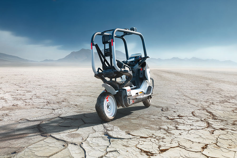 Das Herzstück bildet ein neu entwickelter Metallrohr-Cage mit Sitz und Gurt, der Schutz bietet und gleichzeitig eine offene, leichte Bauweise erlaubt. Mit langem Radstand, beschichtetem Aluminium und klarer Formensprache in Matt-Weiß mit schwarzen Kontrasten wirkt der Vision CE dynamisch und modern. Neonrote Details setzen sportliche Akzente.
