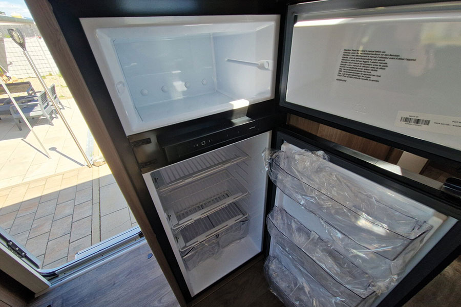 Auch im Wohnbereich überzeugt der T 338 mit einem offenen Raumgefühl. Die Sitzgruppe lädt zum Verweilen ein, während die durchdachte Winkelküche mit Kocher, Kühlschrank und ausreichend Arbeitsfläche alles bietet, was man unterwegs braucht. Ergänzt wird das Ganze durch ein cleveres Variobad, das Dusche und WC platzsparend kombiniert und dennoch komfortabel nutzbar bleibt.