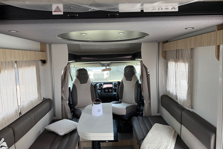 Wer Komfort, Design und Funktionalität in einem kompakten Reisemobil sucht, sollte sich den Chausson Ultimate Line 640 bei Reisemobile Meißner in Haßfurt unbedingt ansehen. Dieses teilintegrierte Raumwunder kombiniert großzügiges Wohnen mit cleverer Raumnutzung – und beweist, dass fast sieben Meter Länge ausreichen, um echtes Urlaubsflair zu erleben. Schon beim Einsteigen fällt auf, wie offen und hell der Innenraum gestaltet ist. Durch das große Panoramadach und die Smart-Lounge mit Face-to-Face-Sitzbänken entsteht ein luftiges Raumgefühl, das sofort zum Wohlfühlen einlädt. Die drehbaren Pilotsitze, der großzügige Tisch und die variable Dinette lassen sich flexibel nutzen – perfekt zum Essen, Spielen oder Entspannen.