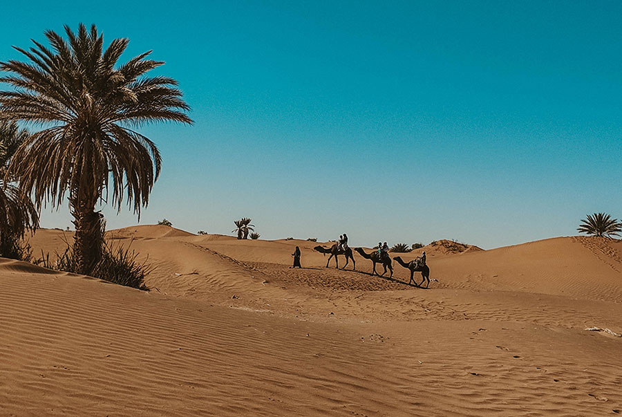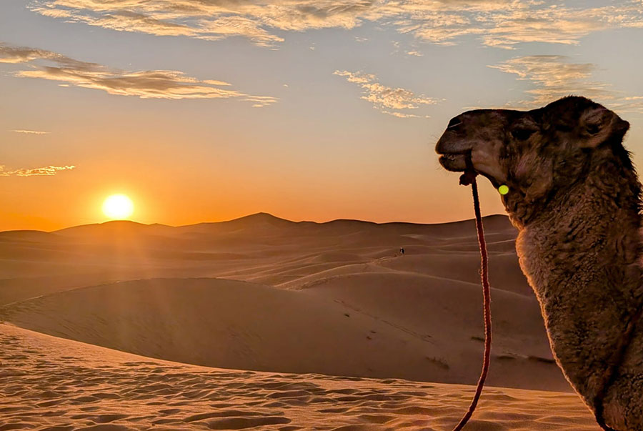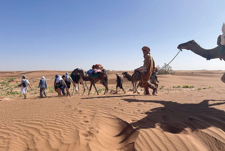Gestartet wird in Marrakesch, von dort führt der Weg über den Hohen Atlas bis an den Rand der Wüste – wo Kamele, Nomaden und unendliche Weite warten. Eine Woche lang leben die Teilnehmenden nomadisch, ziehen von Camp zu Camp, schlafen unter einem Sternenhimmel, der in seiner Klarheit sprachlos macht, und erleben Yoga in seiner ursprünglichsten Form: reduziert, echt und tief verbunden mit der Natur.