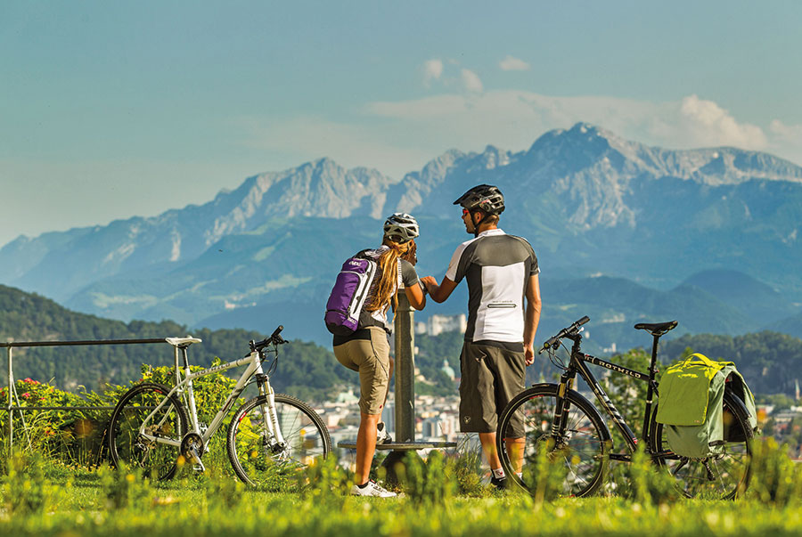 Hinauf zum Gaisberg Für Fans anspruchsvoller Strecken mit einigen "Bergwertungen" ist der Salzburger Hausberg, der Gaisberg, mit 1.287 Metern Höhe fast schon Pflicht. Von dort geht der Blick auf die traumhafte Landschaft rund um Salzburg bis nach Bayern und ins Salzkammergut sowie auf den legendären Schafberg und den imposanten Dachstein-Gletscher.