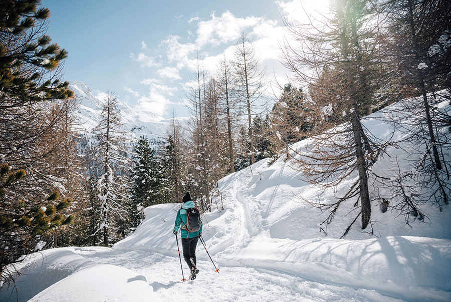 Die winterliche Natur genießt man am besten ohne Auto und ganz in Ruhe. In Südtirol ist das gerade abseits der bekannten Pisten gut möglich. Wer sich in die stillen Seitentäler begibt, entdeckt unberührte Schneelandschaften, verträumte Wege und ursprüngliche Bergerlebnisse. Abwechslungsreiche Touren mit Schneeschuhen oder Langlaufskiern eröffnen eine sanfte Art des Winterurlaubs, die auf Entschleunigung und Nähe zur Natur setzt.