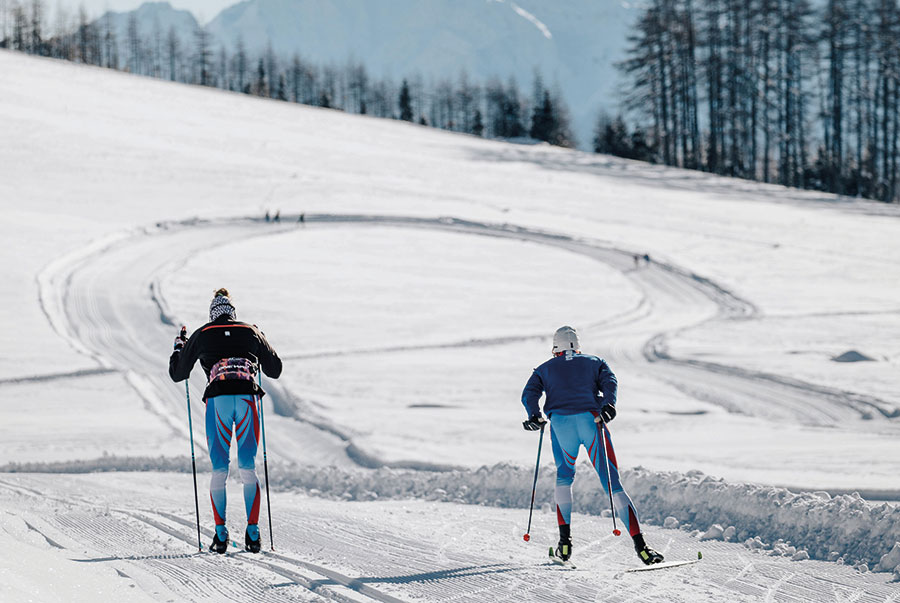 Zu den Südtiroler Highlights in Sachen „Slow winter“ gehören etwa Schneeschuhwanderungen zur Lyfi Alm im Nationalpark Stilfserjoch oder ins Gsiesertal zur Aschtalm, ebenso wie Touren rund um die Drei Zinnen. Auch die Freundalm im Ridnauntal oder die Egger Grub Alm im Passeiertal liegen an schönen Routen – teilweise fährt man hier mit öffentlichen Verkehrsmitteln direkt bis zum Ausgangspunkt. Wer den Langlauf bevorzugt, findet im Nordic Center Schlinig im Vinschgau oder im Pensertal bei Sarnthein ideale Loipenbedingungen. Skitourengeher sind auf Routen am Timmelsjoch oder bei abendlichen Aufstiegen im Gebiet Schöneben-Haideralm richtig. Unvergessliche Momente versprechen zudem Erlebnisse im besonderen Licht des Winters: Fackelwanderungen mit Lagerfeuer und Glühwein in Deutschnofen im Eggental, frühes Skifahren bei Sonnenaufgang am Rosskopf bei Sterzing oder Nachtrodeln im Mondschein am Klausberg im Ahrntal. Solche Aktivitäten zeigen, dass die kalte Jahreszeit in Südtirol weit mehr bietet als den klassischen Pistenbetrieb.