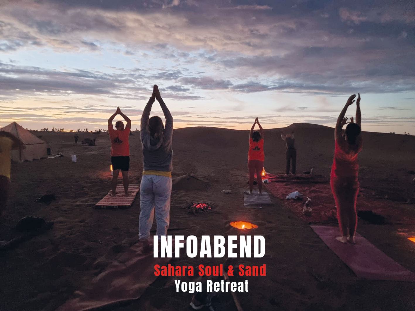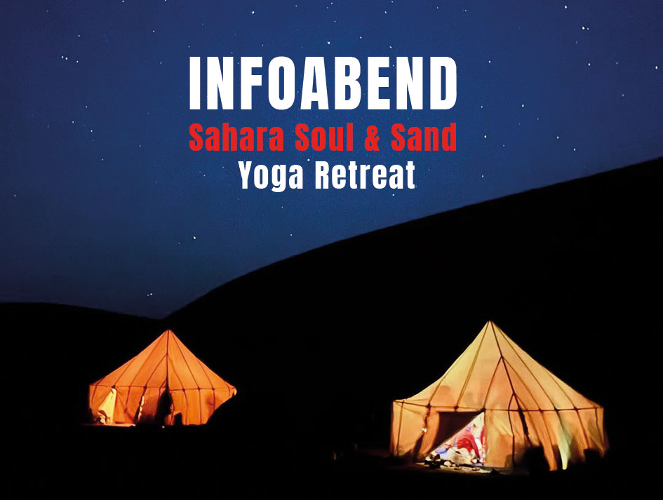 Der Abend richtet sich an alle, die überlegen, am Soul & Sand Yoga-Retreat vom 7. bis 14. Februar 2026 teilzunehmen – oder erfahren möchten, warum die Wüste so tief wirken kann. Denn die Sahara ist kein Urlaubsort. Sie ist ein Ort der Rückverbindung. Ihre Weite, ihre Stille und ihre unglaubliche Einfachheit holen Menschen genau dort ab, wo der Alltag zu laut geworden ist.